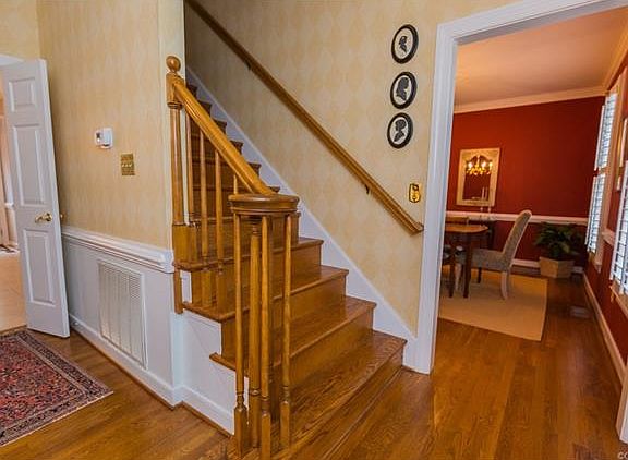 Welcome to HardingâEUR(tm)s Trace, a very desirable western Henrico neighborhood close to shopping and restaurants, Short Pump Town Center, and great schools. This home has easy access to I64, Rte. 288, and I295. Lots of extras in this 4 bedroom, 2 1/2 bath, brick front transitional including 9' ceilings, hardwood floors, dual staircases, living room, family room and formal dining room and much more. Maple wood cabinet kitchen with serving counter to breakfast area. Double access to huge two-level deck. Beautiful sun room with vaulted ceiling and skylights. Master bedroom has adjoining sitting area with built-in cabinetry plus Palladian window. Natural gas heat on first floor. Private cul-de-sac lot with gravel driveway leading to rear-entry 2-car garage.