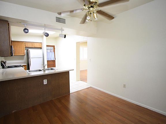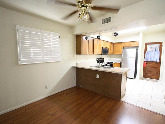 Small private townhome community located in Central Tucson.This 2bdr/1ba has open/bright living room, kitchen w/stainless steel appliances, dining area and counter seating.Great outdoor space w/covered patio.Spacious master bedroom w/private patio and mountain views!Refrigerator, stove, dishwasher, microwave and W/D.Water,sewer and trash included!