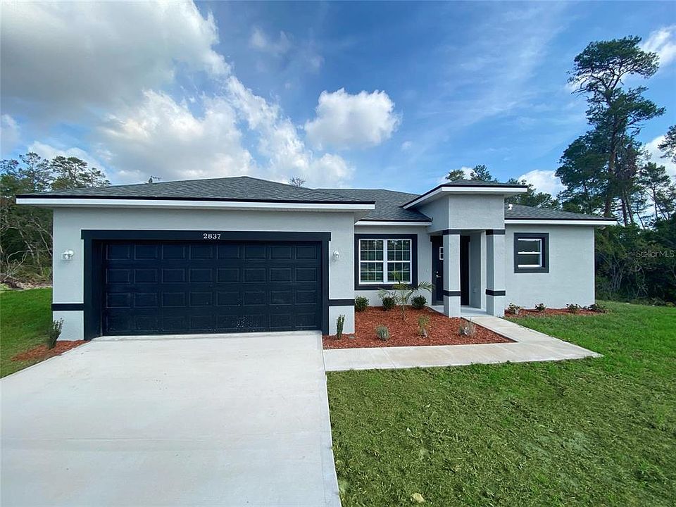 Under Construction. BIG 0.54 ACRE LOT. Brand-new house in Ocala! This stunning home combines modern style and convenience with 4 bedrooms and 2.5 bathrooms. The master bathroom is a true retreat, featuring a stunning STANDALONE TUB and a sleek SHOWER DOOR for added style and functionality. The spacious open floor plan is perfect for hosting large family gatherings, and the fully equipped kitchen includes stainless-steel appliances—refrigerator, range, disposal, dishwasher, and microwave. Additional features include a SMART KEY system for enhanced security and convenience. Exclusive savings for your buyers! Don’t miss out—schedule a showing today! (Photos refer to the model home.)