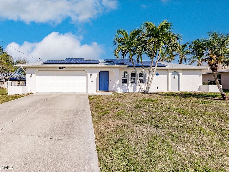 **HUGE PRICE ADJUSTMENT!!! **MOTIVATED SELLERS** Prime Location at an Unbeatable Value! This charming, move-in-ready single-family home boasts 3 bedrooms, 2 bathrooms, and a 2-car garage, complete with solar panels for significantly reduced electricity bills. If the solar panels haven't caught your attention, perhaps the beautifully remodeled master bathroom will. Additional features include a newer roof (2021) and fresh exterior paint. Conveniently situated in SW Cape Coral, close proximity to shopping plazas, grocery stores, parks, and schools make this property a rare find. Don't miss this opportunity – Act quickly to schedule a showing today before this well-maintained and cozy home is gone!