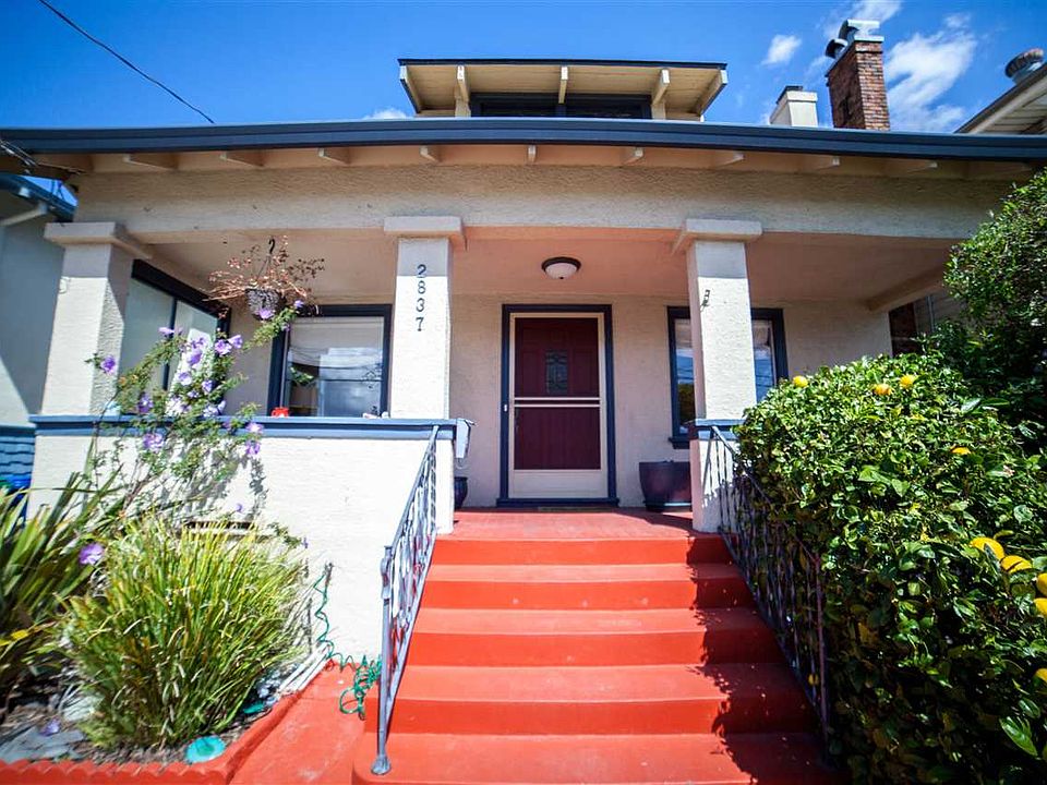 This 1915 classic bungalow is filled with light and brightness. Take a seat on the wide front porch and watch the world go by. Then step into the living room: crown moulding, tall baseboards, dark-trimmed hardwood floors. Look to your right...and you'll see a small study area with a fireplace (Inglenook) and a built-in desk. The box-beamed ceilings in the dining room with the built-in hutch and stained glass cabinets, delight those who love this type of vintage house. A large kitchen (with room for a table and chairs) and the stainless steel appliances, may make cooking a dream! And there's 'plus room', off the master bedroom...could be used as an office, or for a baby, or for hobbies, or could become a master bath? Storage is abundant. The back yard is peaceful, shady. The detached building in the back could also be used as an office, or for extra 'stuff.' The driveway provides off-street parking. Both the front and back gardens are bursting with spring flowers!