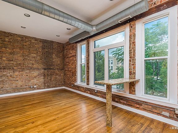 This apartment, situated on the 2nd floor of a beautifully renovated Chicago landmark building, boasts exposed brick and spiral ductwork, lending it a loft-like feel. The spacious open kitchen, dining area, and living room (all with hardwood floors) are bathed in natural light from three large windows overlooking Washington Blvd.