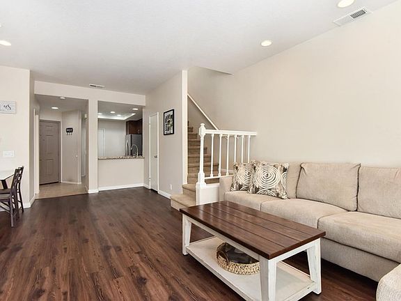 Welcome home to the Montecido community in Portola Hills. This dual master, 2BR 2BA ground floor entry home, has laminate vinyl planking on lower level, recessed lighting, high ceilings and an inviting fireplace. This home has lots of upgrades including Milgard slider and windows, PEX plumbing, and newer designer paint throughout. The kitchen features beautiful thick, flat polished granite counters, newer stainless steel appliances including 5 burner gas stove, custom cabinetry and tile flooring. As you walk upstairs, you are greeted to a light and bright walkway with cathedral ceilings and skylight. The master bedroom is ample size with large mirrored doors and custom closet space with built-ins. The master bath has a dual sink vanity and tiled shower. The additional bedroom features custom closet with built-in drawers and hanging space, plus its own bathroom. The private patio is directly off of the living area, has vinyl fencing surround, with no one directly behind. The attached, single car garage has a laundry center with hanging space and lots of storage shelves and is directly accessible through the kitchen. The community amenities include a pool, clubhouse, workout room and playground. Close to shopping, restaurants, a gym and Award Winning schools. Additionally, coming soon to the Portola Hills area - 5 acre public park that will have playgrounds, picnic areas and sports fields.