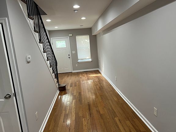 Enter freshly painted t/o with beautiful wood flooring. Modern kitchen with wood cabinets , tiled flooring and SS appliances exit to a rear yard, perfect for summer BBQ.