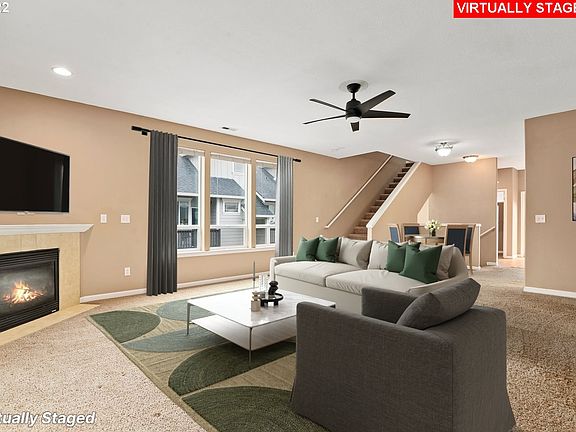 Welcome to this cozy townhome just blocks to Pacific University and Lincoln Park! Wonderful open layout on main with the living room featuring a gas fireplace and a kitchen that boasts generous counter space, large pantry and covered deck to enjoy year-round. 2 upstairs bedrooms with loft and full bath. Private primary bedroom on lower level with en-suite and walk-in closet with back patio access. Lush green landscape surrounds this beautiful property. Must see!