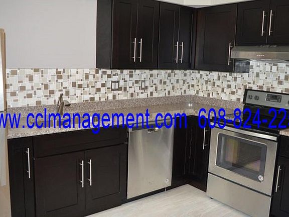 Rent this renovated apartment on the East Side of Madison. Located in the Eken Park neighborhood near East Washington and North St. This main level apartment is in a 3 unit building and has been completely redone featuring granite counters, beautiful wood floors and a modern look. It is the front unit with no upper unit above it. Off the front door is an open living room that overlooks the eat in kitchen. The fully equipped kitchen features brand new cabinetry, granite counters, a tile back splash and stainless steel appliances. Off the back are 2 bedrooms, one with a private exterior entry and exit, along with a beautiful full bath with a tiled surround tub and a modern vanity. This unit also includes: 1 off-street parking spot, water, heat, shared laundry and a private storage area. Emerson, Sherman and East High School!! AVAILABLE SEPTEMBER 1ST! ADDITIONAL FEATURES 1 Offstreet Parking Spot, Dishwasher, Heat and Water Included, On Site Shared Laundry, Private Entrance, Right Next to a Park, Stainless Steel Appliances, storage unit and Wall Unit A/C. 12 Months +