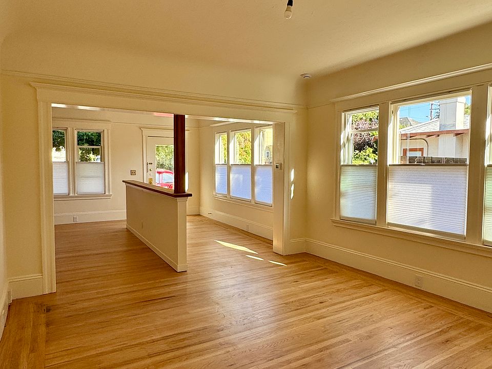 Spacious 1250sf first floor unit in two-story duplex on large lot.