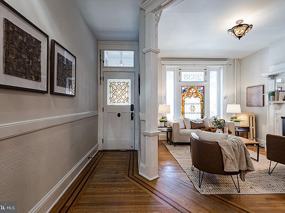 OFFER DEADLINE: Sunday, March 19th at 3:00pm. Charming 3-Story Victorian Townhome in Charles Village with Off-Street Parking for 2 cars! This classic home has great curb appeal with an expansive front porch accented with an outdoor porch swing. You are immediately greeted with soaring high ceilings, decorative molding throughout and beautiful hardwood flooring with wood borders adding an unparalleled look & style. Living room features a unique stained glass window, gas fireplace and decorative mantel. Enjoy hosting dinners in your spacious dining room with a cozy gas fireplace for ambiance. A modern gourmet kitchen with heated floors, gas range, stainless steel appliances, stylish backsplash, granite counters and kitchen island. Upper level floor boats a large primary en suite with built-in wardrobes, and private balcony. A sizable laundry room or possible 5th bedroom. Updated and sleek bathrooms on each level! Amazing rooftop views and spiral staircase. Fully fenced in private backyard and deck, perfect for entertaining. Parking pad behind the backyard for 2 cars. Freshly painted. Roof replaced in 2021. HVAC & Water heater (2018). **Special Benefits District covers security $280/year. Minutes to Johns Hopkins University, Wyman Park & Baltimore Museum of Art. No Ground Rent. Move-in Ready!!