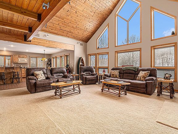 A truly remarkable property offered turnkey. 2+ acres with 216' of frontage on 63-Acre Porcupine Lake. Very quiet Northwoods setting 4.5 miles from Gaylord. 2005-built 4062 sqft with a finished lower-level walk-out provides loads of pristinely conditioned living space, including a spectacular vaulted living room with a prow-front view of the lake & wooded ridge & large family room with wetbar. Interior repainted in 2019. New gutters, deck, & front porch were also installed with Trex® planks & alu railings. The asphalt driveway was seal-coated in 2023. Lake is about 18' deep in front of property with bass & bluegill. See the MLS document of personal property that conveys with the sale and exceptions to the sale.