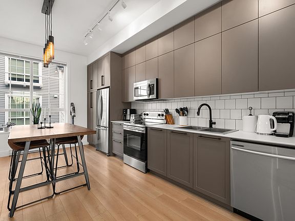 Beautiful, bright and modern 2 bed/2 bath townhome at GARDNER, built by Mosaic Homes. This large 1,160 sqft home in mint condition features a very well thought out open floorplan that offers 10-ft ceilings on the main level. Contemporary kitchen with quartz countertops, s/s appliances and lots of cabinet space. The two bedrooms are located on the top floor. Spacious primary bedroom with plenty of closet space and nooks for extra shelving/cabinets, access to the ensuite that incl. a soaker tub and double sinks. Additional full bathroom with shower on the lower floor. Single car garage plus extended driveway for a truck! Walking distance to Gardner Park, schools and shopping. Easy access to Hwy 1 and High Street Mall is only a short drive away.