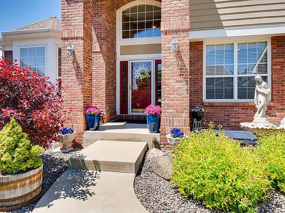 Pulling up to this updated Sanford build home you'll appreciate the stately curb appeal with brick wrap and vaulted front porch! Inside you'll find four bedrooms upstairs, a main floor study with closet and additional bedroom in the partially finished basement. Open kitchen boasts hardwood floors and plenty of cabinet space with an island, adorned with stunning granite countertops and highlighted by the glass tile backsplash. Newer stainless steel appliances make cooking meals easier, including double ovens, cooktop, dishwasher and microwave. Access the covered patio from the eating space and enjoy the generously sized manicured backyard. Master suite offers a sitting area, five piece bath with granite countertops and tile floors, plus a walk in closet. Two bedrooms utilize an updated jack and Jill bath and bedroom 4 is an en-suite with private bath. Newer hail impact resistant roof and newer water heater, 3 car garage, central air.