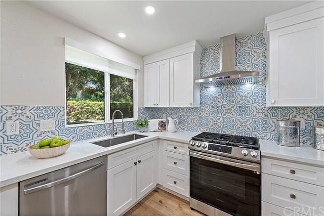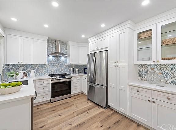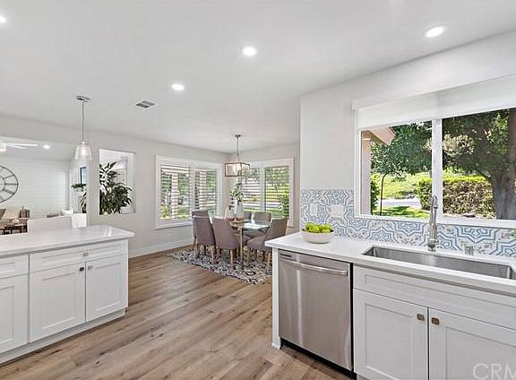 Impeccable upgraded home on small cul-de-sac with greenbelt location. This home has it all. Beautiful luxury vinyl laminate floors throughout. Remodeled kitchen with newer cabinets, newer countertops, and newer appliances with gas stove. Remodeled both bathrooms, one with walk-in shower. Newer windows and sliders throughout. Custom plantation shutters. Custom privacy shades to block the lights in master bedroom and second bedroom. Large living room with custom fireplace. LED recessed lights throughout. Beautiful two tone colors throughout. This home has been tastefully done and your clients will fall in love with it when they enter the home. Newer heating and air conditioning. Newer double pane windows and sliders throughout. This is a Violetta floor plan in the newer section of the community in the heart of the tract( no street noise or power lines here). The home offers two bedrooms, two baths, and two car attached garage with 1295 square feet of luxury. Truly a beautiful place to call home. Community is spread throughout 484 acres with mature trees and beautiful hills. Association offers two recreation center which offers pool, spa, club house, tennis, pickle ball, gym, paddle tennis, shuffleboard courts, billiards and much more. Trash pickup and outside painting are covered by the association. This is a 55+ community that one resident must be 55 years or older and the rest of the residents must be 45 years and older. Member of Lake Mission Viejo with swimming area, picnic area, boating, summer concerts and much more!