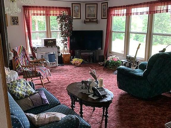 5.5+ acres all fenced, running creek thru the property year around, barn(over 100 yoa), 2 sheds, RV covered storage, 3 car garage/shop, back deck, front covered patio, new roof 2 yrs ago, new hot water heater 1 yr.ago. The house has 2 living rooms, large dining room and Kitchen, and has been very well kept up.