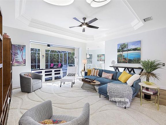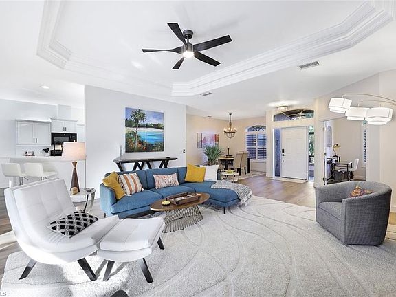 Perfectly located in Bonita Springs, FL. This 3 bedroom plus den, 2 bath home sits right in the middle of the world-renown 5th Ave and 3rd St in Naples and the event filled city of Fort Myers. Never run out of things to do from fine dining to Top Golf. Located in a gorgeous golfing community, Spanish Wells with an optional seasonal membership. Finished wood-like luxury vinyl flooring, beautiful quartz countertops, topped off with alabaster painted walls. Each window has been fitted with custom plantation shutters. The bedrooms consist of a King size mattress in the Master, two twins that could be pushed together to form a king, and lastly a queen mattress located in the third guest bedroom. Plenty of room for all your guests. Spend your time outside in your private pool, cooking on the outside grill. Pets welcomed with approval Enjoy all that Southwest Florida has to offer.