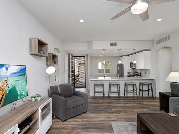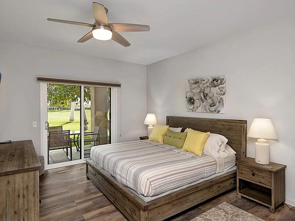 Favorite on Airbnb. Available lease to own also! Minutes from downtown Palm Springs. Beautiful, Gated Private Country Club setting! Back porch overlooks the Golf Course. Come relax and chill out! This split Jack & Jill floor plan offers 2 Master Suite Bedrooms/2 Full Private Bath (both with King Beds). Totally renovated. Fully equipped Kitchen. 3 Smart TV's. Steps to the pool. Come enjoy all that Desert Princess Resort has to offer, from 34 Pools/Golf Club/Restaurant /Tennis. Private Garage. Includes Internet! Utilities Gas & Electric not included. Free Gym access and discounts on Golf, PicketBall and the Onsite Restaurant! This listing has been a Favorite Superhost location on Airbnb! Recently Updated Interior | On The Golf Course | Community Amenity Access | Free WiFi | Steps to Pool Ideal for California desert escapes, this single-story residence boasts a gorgeous modern interior, access to fantastic amenities, and a prime location near Palm Springs! Bedroom:2 King Bed | 2 Full Baths | Smart TVs | LED Lighting | Ceiling Fan DESERT PRINCESS AMENITIES: Fitness center, 34 community pools, hot tubs, tennis courts, on-site golf course (for an additional fee), walking paths, bocce ball, pickle ball, spa, on-site restaurant, golf pro shop, gated community, 24-hour security STEP OUTSIDE: Private covered patio w/ outdoor dining table, patio furniture, gas grill, Golf Course course views INTERIOR LIVING: Modern furnishings, natural sunlight, 3 flat-screen Smart TVs, dining table, Breakfast bar, tall ceilings, LED lighting KITCHEN: Fully equipped kitchen, select stainless steel appliances and coffee maker. GENERAL: Central A/C, linens & towels and pool towels provided. PARKING: Garage (1 vehicle) Driveway (1 vehicle), road parking space (1 vehicle) This is a year lease starting July 17th 2024. Fully Furnished with internet and a gym. Discounts at on Golf, Picket-ball and at the Restaurant. Available Short Term in High Season if not rented at $5000 per mth January-April 2025