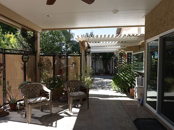This house features a cozy and shaded backyard where thrive lush green trees and colorful ground covers. A high covered patio, barbecue island and a water fountain help complete its functionality.
