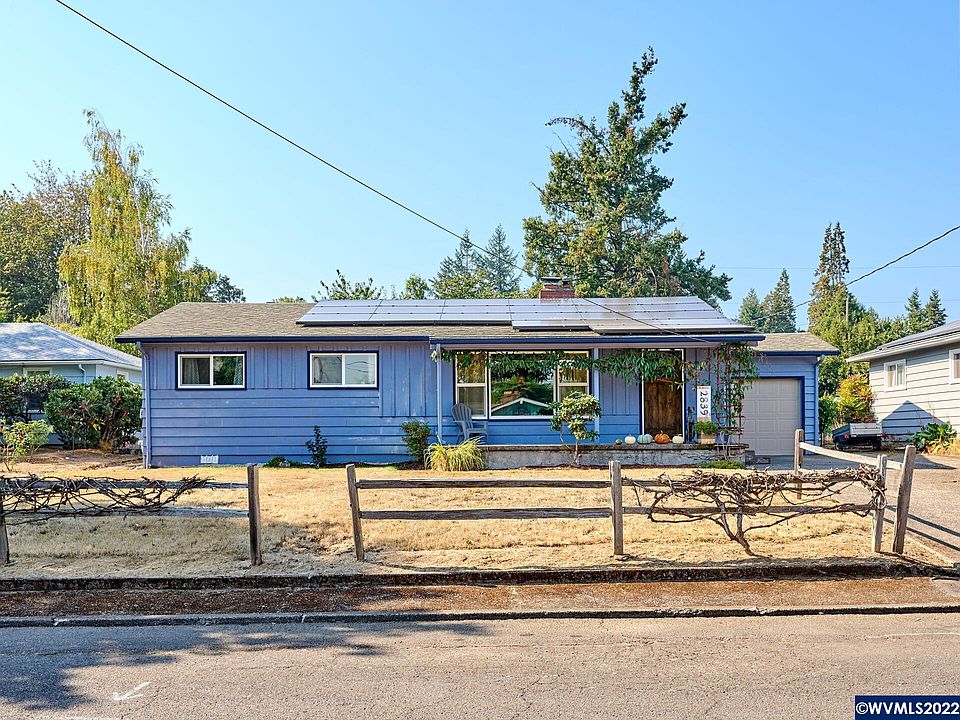 Ideal South Salem location. Close to schools, shopping & bus line. Cute home with lots of character. Hardwood floors and fireplace in living room. Loads of cupboard space in kitchen. 4th bedroom/bath combo is off garage with it's own sliding door entrance. Could be an office, workout room or playroom. Use your imagination. Updated AC in main home area with updated mini-split in back room. Updated electrical panel. 10kwh producing solar panels recently installed for a low electric bill. Fenced backyard.