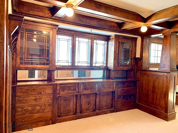 BRING YOUR HORSES to this Charming Craftsman Home on 10 Acres with 2 garages, a tack shed, chicken coop and a 32X40 SHOP - just 5 miles past Billings Heights! They don't make them like this one anymore - the hand done gorgeous hardwood detail beams in the dining area, built in maple buffet with glass cabinets, drawers and so much storage, plus picture rail and plate rail, high ceilings and wood clad windows throughout. This home is located on 10 acres with a spacious shop, double garage, single garage/carport, tack shed/chicken coop only 5 miles from Billings Heights and it has a Billings address! You'll find 4 bedrooms, 2 baths in this 1913 turn of the century home with loads of history and character. Original home was moved from the west end of Billings and placed on a walk out basement foundation. Included are 10 acres with perimeter fencing, water right from Billings Canal running through property, dryland grass pasture above the house, bottom pasture perfect for horses or garden, which was flood irrigated in the past. Perfect property for horses/animals, big garden and room to run, with an above ground sprinkler system/irrigation pump for yard around home. Many trees make this a private oasis. New Whole House Water Filtration System, Reverse Osmosis and Water Softener was installed in April 2023 and new septic tank and drain field installed in June 2023. Home has a good yielding well and also an irrigation pump at the canal running through the property.