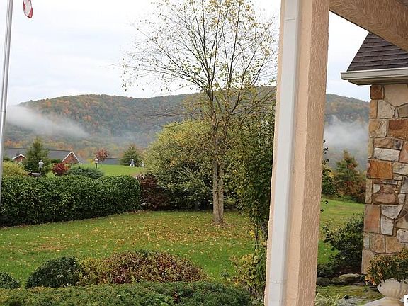 Majestic Views! Easy Access! Tudor-Style Tri Level on 1.53+/-acres! Heated & Cooled Garage and Professionally Landscaped. Main lvl: Kitchen/Living/Dining Combo, Tile surround Woodburning FP, Master Suite with Walk in Closet, Spa type Bathroom with Custom Tile, Two Guest Bedrooms with Bath, Gleaming Hardwood and Tile Flooring. Downstairs: Enormous Living Rm with Wet Bar and gas cook stove hookup, Tile Flooring, Natural Gas Log FP, Master Suite with unique tiled full bath, walk through closet, plus two large storage rooms. Upstairs: finished bonus rm with large closet. Terrific Home Theatre possibility or use as another bedroom.