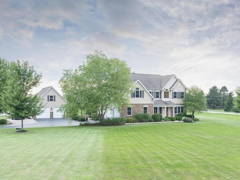 DISTINCTIVE AND DIFFERENT! Enjoy country seclusion on 2+ acres! Featuring 4 BR's w/3200+ sq. ft., 2 car attached and 2-car detached garages, 10 X 18 Storage barn, AMAZING outdoor entertainment area w/Trex deck, paver patio, built in grill, and fireplace! Also offering a finished LL rec area w/1/2 bath! The upper level features 4 BR's plus a loft, updated baths (granite/quartz vanities, shower/bath tile surrounds and tile flooring)! The equipped kitchen is highlighted w/hardwood floors, granite counters, tile backsplash, center island, and built in desk/work station! Convenient 1st floor laundry w/TRUE separate mudroom! New interior/exterior light fixtures, new carpet, paved driveway, stone/shake style siding and covered porch! Country living....city close....just minutes from town!