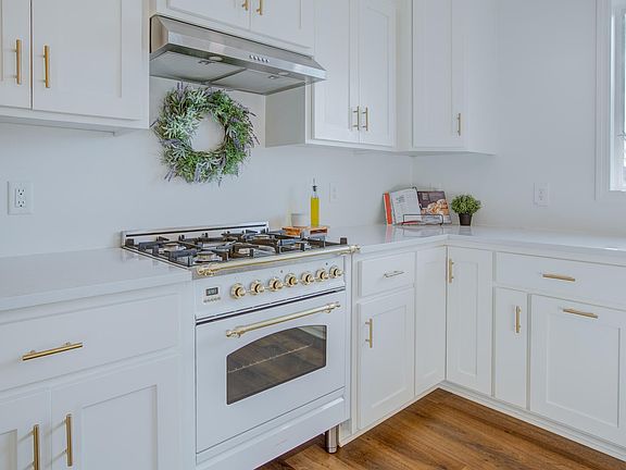 The primary bedroom suite is a true retreat, complete with a heated towel rack for added luxury. The heart of the home boasts a Hallman Italian stove and sleek stainless steel Whirlpool appliances, complemented by elegant quartz countertops. Expansive vaulted ceilings and large windows flood the home with natural light, enhancing the open and airy feel.