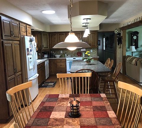 Super charming and beautifully updated ranch style home located in a nice country setting. All of this is located within close proximity to the hospital, doctors offices, and shopping. This extremely well maintained and updated home sits on just a little over 1.5 acres on a paved road with a blacktop driveway. This home features real hardwood and ceramic tile floors, oak kitchen cupboards, quartz countertops, updated fixtures and lighting, large rooms, two office areas, gas log fireplace, separate laundry room, four seasons sunroom, energy efficient natural gas hot water baseboard heat, all appliances and so much more! This home offers plenty of living space at over 2400 sq ft. All of this sits in a gorgeous setting with lots of shade and fruit trees. There is also a 48x28 frame built detached garage with a large storage loft above, as well as a 2 car attached garage on the house. This home has everything you'll need for comfortable country living. 2.5% to the buyers agent