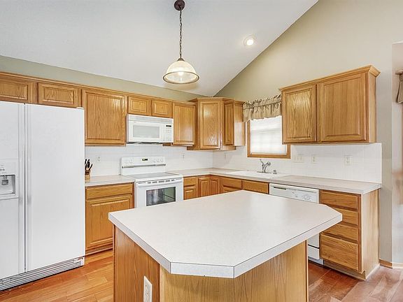 Ranch home in Bradford North. Large Lot and 3 car garage with well and sprinkler system and fenced back yard. Main floor has vaulted ceilings in living room and kitchen. Large Master bedroom with master bath tub and shower and double sinks plus walk in closet. Nice sized 2nd bedroom and hall bath. Basement is finished with tile floors. Very nice wet bar with granite and built in key box. 2 bedrooms and full bath. Bedrooms in basement will have new carpet. before closing buyer can choose from 4 colors. AC & Furnace only 2 years old. No Specials and Maize Schools. Backyard will also be reseeded or sodded before closing.