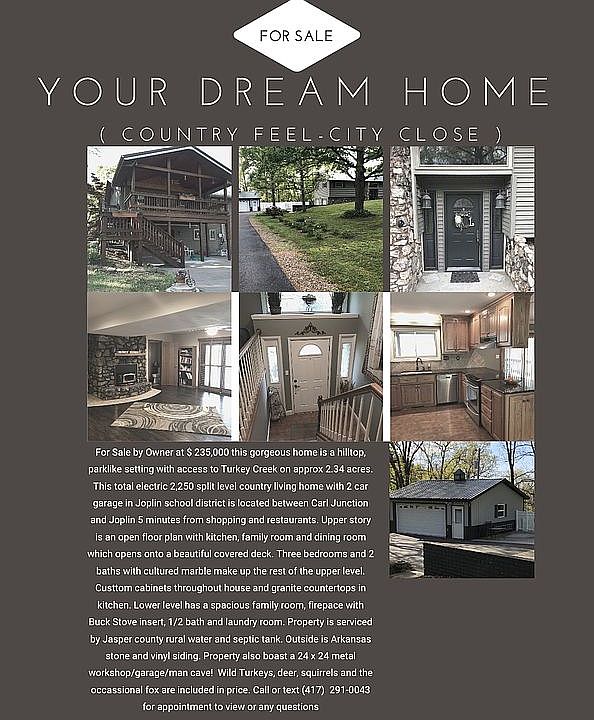 Come home to your private oasis situated on 2.34 acres and bordered by Turkey Creek. The beautiful open floor plan living area features crown molding and a large window that floods the room with natural sunlight. The kitchen comes with all appliances and has an eat at bar that seats 4. The dining room opens to the beautiful covered deck with a tongue in groove wood ceiling that is perfect for entertaining. The walk out basement features a second living area with large closets perfect for extra storage and a half bath. The detached 2 car garage would make any car enthusiast swoon or is just right for those weekend projects.