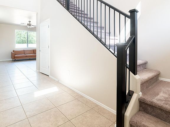 2021 home that makes a big statement; featuring: a Grand entry way, guest bathdownstairs, large living area w/ tile flooring throughout the 1st floor, wrap-around kitchen w/ granite countertops, extended cabinets, undermount kitchensink, & stainless-steel appliances that include a gas stove & a LG French door-in-door refrigerator. Upstairs you have 2 large guest bedrooms w/ beautifulpicture windows & a shared bathroom, laundry in the hallway with LG high-efficiency washer & gas dryer, and then a huge Primary Suite w/ walk-in shower,large walk-in closet. All the rooms have installed LED ceiling fans. Home also includes a private steel-fenced and block wall backyard, transferrable Builder'swarranty, and two-car garage.