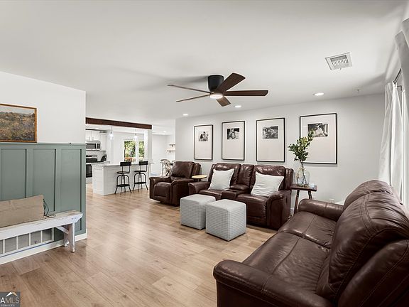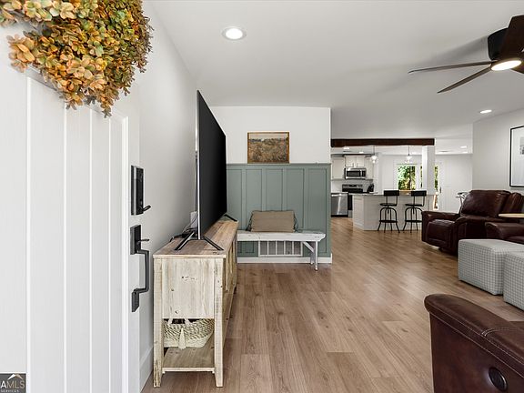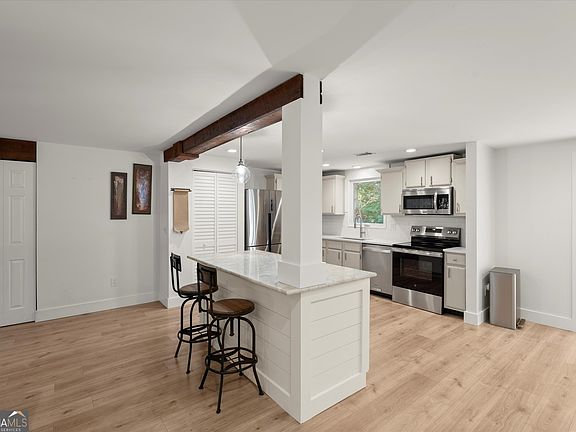 Don't miss your chance to see this amazing, completely renovated home with a gorgeous LAKE VIEW! This inviting and open layout offers ease of living with living room, kitchen, and dining space all open to each other. New flooring and fresh paint throughout as well as updated lighting, so all you have to do is move in! Kitchen boasts quartz counters, a spacious island with plenty of storage and work space, painted cabinetry and stainless steel appliances including separate wine fridge, overlooking both living/dining areas as well as amazing yard. Secondary bedrooms have custom trim work details and a updated secondary hall bath. Primary suite also boasts beautifully renovated bathroom with tile shower and new vanity. The bones of the house are in fantastic shape as well with newer premium HVAC (with dust filters & UV light), water heater, new windows, new Hardiplank siding, garage doors and more! Backyard is huge with plenty of play space and a beautiful lake view--bring your own paddle board or kayak to enjoy your slice of heaven! All of this right in the heart of East Cobb with easy highway access as well as shopping and schools, in a neighborhood without an HOA and a quiet cul-de-sac lot!