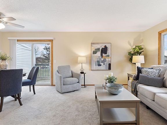 Warm & welcoming Woodbury end unit Townhome w/2 car garage in quiet development! Only one owner! Interior just professionally painted, including ceilings. Carpets & ducts professionally cleaned and new ceiling fans & blinds to sliding glass doors replaced. Strong & healthy HOA w/low monthly dues! This townhome is more updated than most in the development that have sold in the past few years. Open layout w/lots of natural light. Living Rm flows seamlessly to Dining Rm and larger Kitchen. Listen to the birds while you enjoy a cup of coffee on your private deck. The kitchen features high-gloss white appliances and upgraded oak cabinets, updated counters w/undermount sink & low maintenance flooring. Nicely-sized bdrms including primary bedroom w/walk-in closet. Updated upper bath is ready to go w/nice storage space! The walkout Lwr Lvl features a Lrg Family Rm w/additional space for playing board games, 2nd bath w/shower, and a laundry room. Newer windows, roof, siding, Lennox furnace & AC. Convenient location -walking distance to Colby Lake, the clubhouse, trails, schools and more! Minutes to unlimited restaurants & shopping! See interactive 3D tour!