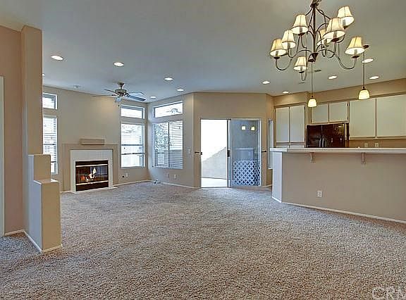 Carriage style end unit located in the community of Montecido with no one above or below, this home is move-in ready. Designer paint schema, gas fireplace, light catching windows and direct patio access in the living room beautifully compliments the kitchen with tile countertops, gas range, and ample storage space. The dining area seamlessly connects with the kitchen and living area. Enjoy the serenity of the spacious master suite with ceiling fan, sizable walk-in closet and an en suite bathroom. The secondary bedroom has a double door entry, spacious closet and is adjacent to a full hallway bathroom. The attached one car garage with washer/dryer hookups affords convenient access into the home. Close to community pool & spa, park, shopping, dining and more.