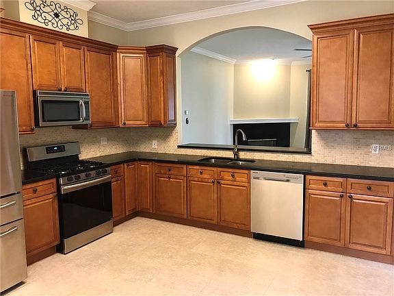Gorgeous 3 BR/2 BA in Meadow Pointe! As you enter you will notice upgraded lighting and low maintenance 20" porcelain flooring... to your right the formal dining area with bay windows, plantation shutters, decorator details and lots of natural light. To your left a gourmet kitchen with 42" solid wood cabinetry with soft close drawers, black galaxy granite, stone backsplash, upgraded Samsung stainless appliances and breakfast nook. Kitchen overlooks the tiled, spacious living area and has a beautiful wood-burning fireplace. Grand sliders let in lots of light and allow access to the screened in lanai for relaxing and entertaining. The split bedroom floor plan creates privacy for the master suite - newer wood flooring in the generous sized bedroom and porcelain tile in the updated, light and bright master bath. Newly porcelain tiled stand up shower with seamless glass door and garden tub... contemporary dual sinks... incredible, exotic granite.... his and hers walk-in closets! Two carpeted bedrooms on the other side of the home share another updated full bath with granite. Volume ceilings and crown moulding throughout! Cap things off with a one year old roof! A home you will truly love "coming home" to! On top of all this 'awesomeness', the location can't be beat.... too many choices to share with regard to shopping, dining, excellent schools, state of the art hospitals, parks, recreation all within minutes! Easy access to interstate, downtown Tampa, airport, Florida attractions and beaches!
