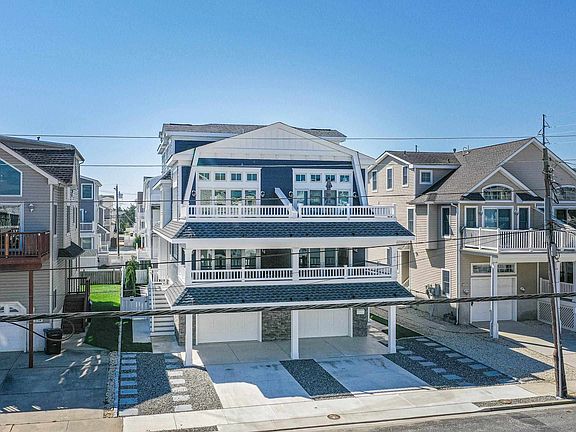 This centrally located, brand new townhome is situated only two cross streets from wide, beautiful beach and steps from the center of Avalon. The furnished home offers two extraordinary deck spaces with views of the bay and sunset, an expansive rear yard complete with a heated pool, and large entertaining spaces on both the first and second floor. The first floor has three bedrooms (one of which has 4 custom built bunk beds) and one full bathroom. The second floor is largely dedicated to the entertaining space, with a large kitchen outfit with custom cabinetry, stone countertops, and stainless-steel appliances. The living room is centered on a gas fireplace and offers slider access to the second floor deck. This story also has a powder room and a large laundry room. The third floor features two bedrooms, both with ensuite bathrooms. One of those bedrooms is the primary suite, which offers a large bathroom, walk-in closet, and shiplap accent wall. On the grade level, the raised foundation is 8’ tall and provides more storage and parking than you could ever use. Best of all, this property is truly a park your car for the weekend location, with a two block walk to the beach and a similar stroll into Avalon's restaurant, nightlife and shopping district. Schedule your showing to see this beautiful home today.