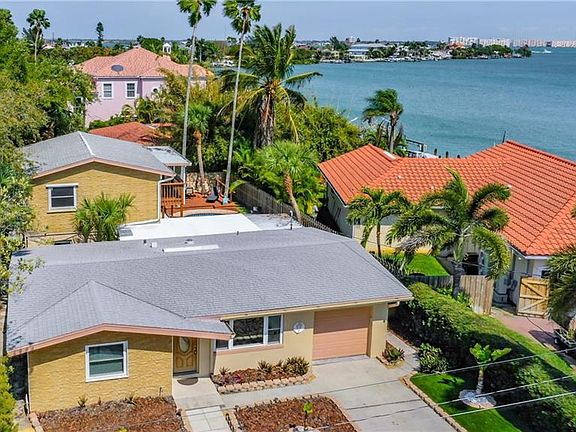 Seller will contribute up to $10,000 towards buyer's closing costs! This is the St Pete Beach Paradise you've been waiting for. Take a quick 5 minute stroll to world famous St. Pete Beach from this beautiful home in the highly sought after Belle Vista neighborhood. The main house features imported porcelain tile used throughout with freshly painted walls and crown molding in every room. Open kitchen features granite counter tops, SS Appliances, convection oven, soft close solid wood cabinets with under and above cabinet LED lighting. The second story features the master suite with separate media room with outside balcony that overlooks the sparkling custom saltwater heated pool (2016) and water view of Boca Ciega Bay. Other features include vinyl double pane impact resistant windows (2016), 16 seer rated A/C with newer duct work and 4 additional mini split A/C units for the master, media room and in-law guest suite for total A/C efficiency (2016). Newer gutters with patented gutter leaf guards. Don't forget to check out the in-law suite with separate entrance and it's own parking area.
