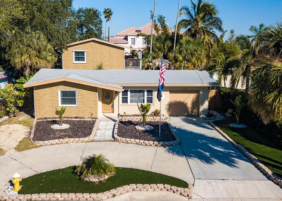 LOCATION, LOCATION....You're ONLY a 5 minute walk to world famous St. Pete Beach from this totally up dated home in highly sought after St. Pete Beach Belle Vista neighborhood. Attention to detail is unsurpassed. Imported porcelain tile used throughout with freshly painted walls and crown molding in every room. Open kitchen features granite counter tops, SS Appliances, Convection oven, Soft Closing solid wood cabinets with under and above cabinet LED lighting. This home also includes a 1,300 sqft addition that features the Master Suite on the second floor and an amazing bonus/game room, with separate bedroom and bath below. With the master suite there is a separate media room with outside balcony that overlooks the sparkling new custom saltwater heated pool, tikki hut and water view of Boca Ciega Bay to enjoy the morning sunrises. To round out all the other features... ALL new vinyl double pain impact resistant windows, 16 seer rated A/C with new duct work and 3 additional mini split A/C units for the Master, Media Room and In-Law Guest suite for total A/C efficiency. New gutters with patented gutter leaf guards. Sellers are even leaving their 6 person JACUZZI. There is nothing left to do with this home but move right in. Close to the Don CeSar Hotel, Eclectic restaurants and loads of shopping make this the perfect Florida beach area home.