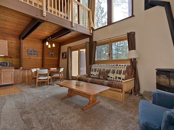 Classic Mountain Cabin nestled in the pines. Forested setting offering privacy and a mountain vibe on a quiet street while being super close to The Village at Mammoth makes this one of the best locations in Town! Being so close to The Village means the best access to the free gondola to Canyon Lodge, Night of Lights, Red Line Shuttle to Main Lodge, summer festivals, Bike Park/ mountain bike access, and the best restaurants, bars, and shops in town! This is the perfect getaway for friends or family with a great layout. Enter through a covered porch into a convenient mud room area that opens to the living, dining, and kitchen. Enjoy natural light all day long from the floor to ceiling widows and skylights, an efficient pellet stove for a cozy cabin feel, vaulted ceilings, an open loft with a pool table and offering two bedrooms and a bathroom downstairs, large bedroom and the second bathroom upstairs, and a massive storage closet for all the gear. Large front and back decks for summer entertaining, a separate laundry room, interior access into the attached one car garage, additional storage in the outdoor storage shed, with plenty of off-street parking in the driveway on a large lot in a residential neighborhood located in close proximity to USFS open space. Many upgrades throughout including stainless Viking gas range, remodeled bathrooms, new water heater, propane FAU, and an attic fan to keep the home cool in summer.