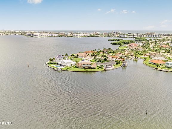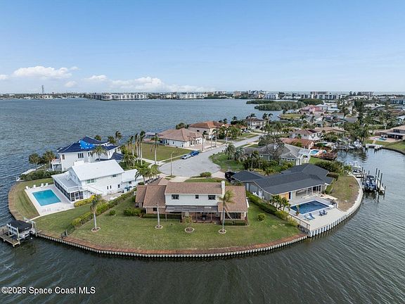 Welcome to the home where the sunsets steal the show. A direct riverfront gem, perched along 160 ft of Banana river frontage. Located on a quiet cul-de-sac in a desirable and well established neighborhood, with NO HOA. This stunning property offers rare privacy and river views from nearly every room. The beautifully maintained exterior brick home features a brand new tile roof, lush tropical landscaping and a layout designed for comfort and entertaining. Off the garage, you will find a decent size workshop. Located downstairs is the primary bedroom as well as a entertaining room with a wet bar, perfect for hosting. Upstairs, you'll walk into a big foyer that leads to 2 spacious bedrooms connected by a Jack & Jill bathroom. This home also offers a rare stand-up attic, providing ample storage. Whether your looking for a peaceful retreat, a space to entertain or simply a front-row seat to the most spectacular sunsets on the Space Coast, this home is sure to deliver.