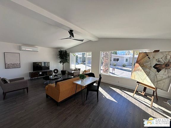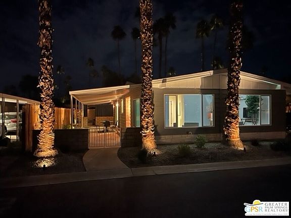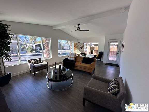 Completely redone from the studs, 3 bedroom,2 bath 1536 sq ft TURNKEY FURNISHED mobile home in most highly sought after 55+ gated/18 hole golf course community with restaurant, clubhouse, tennis courts, 5 pools/spas, exercise rooms, suanas, RV parking, even a nice sized dog park... in Cathedral City minutes from casino, cinema, reparatory theatre, restaurants, shopping, Palm Springs airport etc etc. Nothing was spared or overlooked in this redo. Luxury upgrades meets with efficiency. Upgrades include but not limited to: drywall throughout, waterproof laminate flooring, high efficiency/low energy windows, LED lighting inside/outside, mini splits heating/cooling wall units and designer remote controlled ceiling fans throughout home. The upgraded gourmet kitchen features quartz countertops, a butcher block island, butler's pantry, plenty of cabinetry, all new Samsung wifi enabled appliances (for example a French Door fridge with dual ice makers, a 5 burner gas range w/convection oven, ultra quiet D/W & Slimline Microwave). Kitchen comes with a breakfast bar plus adjoining room offers spacious area for dining. Each bedroom has been updated with special designed closet organization and 1 of the 3 bedrooms has option to be comfortable office with closet for storage. Each bathroom has been redesigned with quartz countertop vanities, lovely mirrors over the sinks plus new tiling and glass enclosures for each walk in shower. Laundry area offers brand new Samsung wifi enabled washer and gas dryer. This home is not only functional and beautiful but also environmentally friendly (besides the aforementioned dual pane windows, LED lighting inside and out, efficient mini-split heating & cooling systems in each of the main rooms) it offers dual flush high efficiency toilets and an Aquasana water filtration & softening system. the outdoor area have been professionally landscaped with automatic irrigation and lighting. There is a fenced backyard with grapefruits galore to enjoy, spacious front patio with a private Softub Spa for the homeowner to enjoy the best of outdoor living and entertaining. Whether a private retreat or a place to entertain and enjoy the company of family and friends, this modern upgraded home is the epitome of comfort and function. This is a MUST SEE and a MUST OFFER opportunity. offered at $250,000.