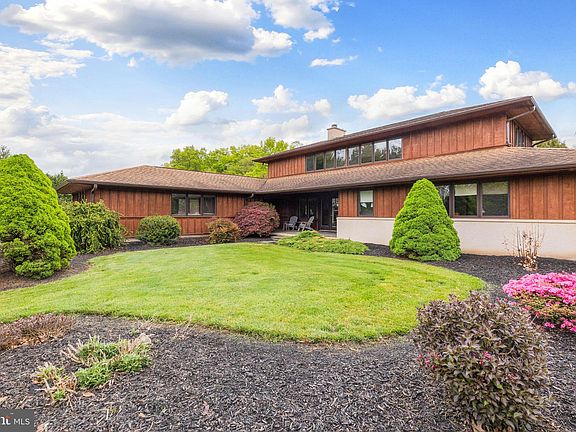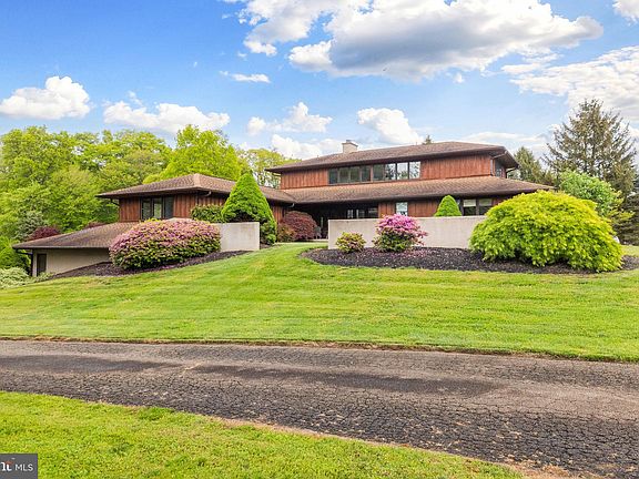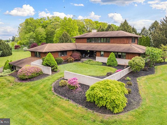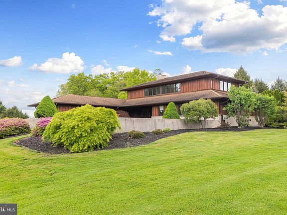 Custom Contemporary board and batten cedar home situated on a beautiful 2.5 +/- acre  country lot at the end of a  long lane offering privacy and serenity.  Enter into the fabulous two-story living room with a double-sided fireplace, heated tile floors, built in cabinetry and a huge wall of windows allowing the sunlight to pour in! The front door opens to a covered porch with a slate floor and a courtyard adorned with splendid plantings.  The living room connects to the eat-in “Chef’s Kitchen” with handsome custom-built oak cabinetry, Corian countertops, center island with seating, commercial Dacor, 4 Burner cooktop with large griddle/grill, wall oven, trash compactor, desk area, fireplace, sleek black appliances and tile floors. The kitchen opens to a rear covered patio. Wonderful 1st floor owners suite with 3-piece tile bath including a steam / sauna  shower, walk-in closet, recessed lighting, heated tile floors. Turned staircase leads to two additional bedrooms and a full hall bathroom with a jetted tub on the second floor.  The main level In-law suite with a separate entrance is located right off of the covered porch, offering a  living room, bedroom and full tile bathroom.  The lower level includes a fully carpeted recreational room, a wine cellar and laundry room w/ laundry chute & wash sink, tile floor. Grade level access to the 3 car (26 x 36) oversized garage w/ mudroom leading to a large office with a full bath.  Perfect for the car enthusiast! 200 amp panel w/ separate generator panel.  Raised garden beds. Fine specimen plantings and professionally landscaped.