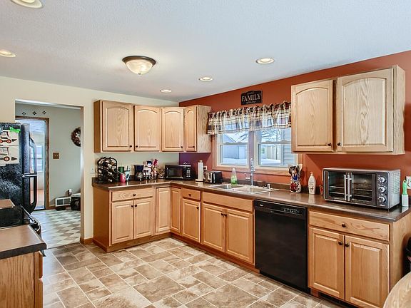 Spacious 1.5 story home with many updates and lots of storage. Featuring 4 bedrooms, 1.5 baths, spacious living room, family room, eat-in kitchen, main floor laundry, enclosed back porch, and a 2-stall attached garage. Relax outdoors on the deck that overlooks the large backyard. Updates in the last 10 years include: kitchen, master bedroom, playroom, deck, and roof.