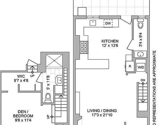 The finished basement level of the apartment is perfect for a sleeping alcove or work studio where there is a large, walk-in closet, outfitted with a custom-built shelving system, and a subway tiled bathroom with a large walk-in shower. It's rare to find a garden apartment layout with a flexible alcove and full bath located on a separate floor, creating a duplex experience.