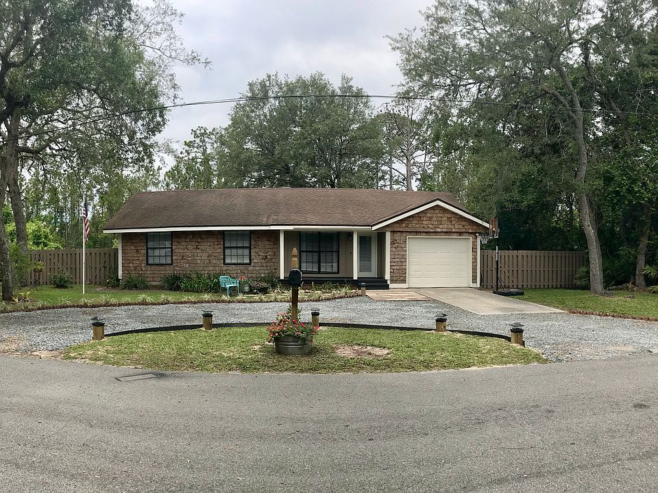This adorable 1205 square foot, 3/2 home in St. Augustine South has a large yard that backs up to a county preserve which gives it exceptional privacy. Fully fenced with extra wide double gate and room for RV or boat storage. The back deck and covered patio are wonderful places to sit and relax or entertain outdoors, where you can enjoy Florida’s natural living. The front porch is welcoming with view. The area directly across the street cannot be built on due to FPL right of way. The kitchen includes stainless appliances, under counter LED lighting, and pantry area. The kitchen opens out onto deck. The dining room is spacious with built in, glass front cabinets, access to covered porch and a beautiful view of backyard. Which has plenty of room for a pool! Hallway leading to bedrooms has both coat closet and linen closet. Large master bedroom with walk-in closet and updated master bathroom with custom marble vanity and Jacuzzi bathtub. Comfortably sized living area with good flow to rest of the house. Fresh paint and updated flooring throughout. Location offers proximity to shopping, etc. and is minutes to historic downtown St. Augustine/ten minutes to beaches. No HOA fees. Added features: 10 x 10 shed in back/washer-dryer hookup in garage/recently upgraded AC/garage door opener/well and irrigation system. Neighborhood has 2 boat ramps. The charm of this house is impossible to miss! For sale by owner. For more info please call the owner at 904-814-4626