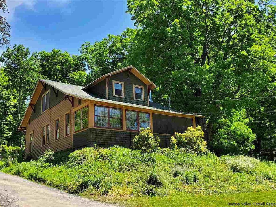 Charming 1920's Arts & Crafts set on 9.6 acres set up for horses or your own mini farm! Many original details including hardwood floors, glass paned doors, arched entry way and built in corner hutch. Light and bright downstairs with great flow. Large/open eat in kitchen, separate formal dining room. Cozy living room with woodstove that leads you to the enclosed porch with two sitting areas. Full bathroom with clawfoot tub and laundry room complete the first floor. Upstairs features wide board floors, 3 bedrooms all with high vaulted ceilings and large closets. Full bath upstairs with whirlpool tub & separate shower. Beautiful landscaping with blue stone patio for outdoor dining, fenced garden area with raised beds and a chicken coop. Ready for your horses/farm animals with 2 paddocks, 2 barns with 4 stalls and a tack/feed room with electric. Partial Mohonk views from top of property that could be increased with some clearing. Roof and well pump 3 years old, inside and outside have been painted with craftsman colors to preserve the historic character.