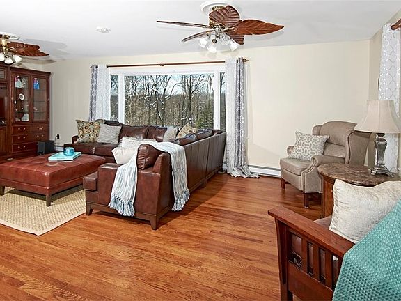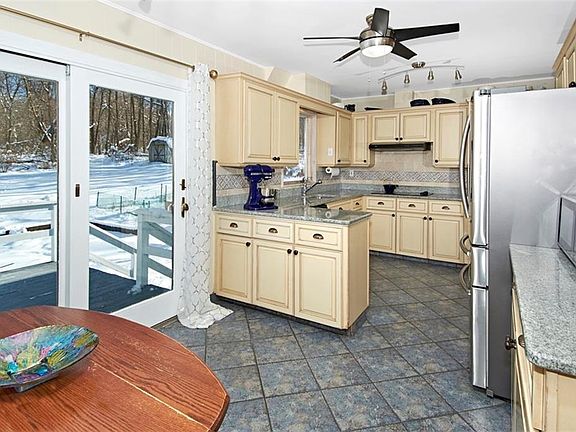 Escape to this sun-drenched updated raised ranch set on over 3.5 park-like acres that abuts nature preserve and Briarcliff-Peekskill Trailway. Fabulous open flow with over-sized Marvin windows and hardwood floors. Living and dining rooms open to updated EIK with granite counter tops and stainless steel appliances, including new Wolf double wall oven. Two sets of large sliding doors opening from both Kitchen and DR to an expansive deck and patio. 4 large BDRS, including MBR with Updated Bth, and renovated double vanity hall BTH, and additional full BTH on first level. Updated lower level great room with new wood tile floor, wood burning raised hearth FPL and huge new Marvin french doors with side lights. All orig. windows replaced. New solid core doors, throughout. House wired with generator switch. This exceptionally well-maintained home should not be missed! Taxes do not include STAR deduction.
