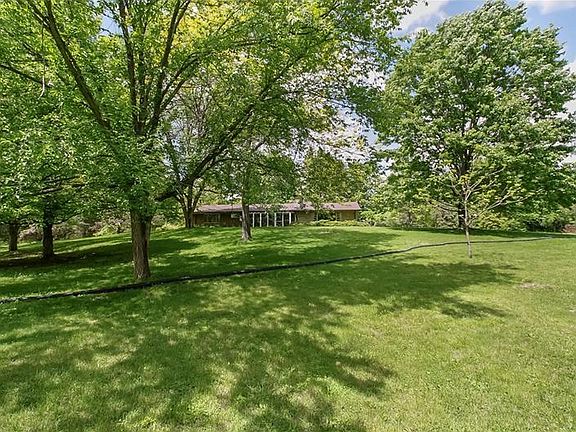 ALL BRICK RAMBLING RANCH ON 6.39 ACRES, SELLER INSTALLNG CITY WATER AND NEW SEPTIC! Lovely yard and huge pond, park like private setting with tandem 3+ car garage, storage galore, enclosed sun porch, lovely large sunken living room with stone wall WB Fireplace and stone accents in the home, large eat in kitchen with newer some stainless appliances, dining room walks outside and has granite topped sideboard and cupboards, 2 full baths and main level laundry! 2013 Roof, 2008 Furnace and AC. Covered rear concrete patio is perfect to enjoy a bbq and look at the lovely landscaping and private setting.