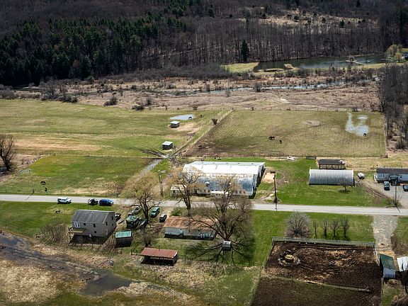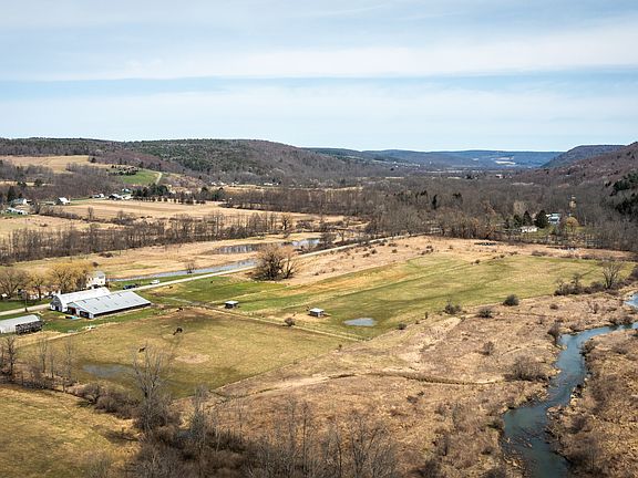 Endless possibilities exist in this quiet country living abode. Featuring two barns to tend to your horses, chickens, or other livestock. On those colder rainy days take advantage of the well-maintained, bright, and open 33x110 riding arena connecting the barns. There is the potential for 30 stalls to board horses of your own or could have income possibilities. Nearly 20 acres of fenced open pasture gives the horses currently on-site room to roam and graze. Make your home in the recently-built raised ranch style 2 bedroom / 1 bathroom situated over a 2 car garage. The open concept allows for the light to shine in from all angles -- sunrise to sunset. The kitchen features natural hickory cabinets, stainless steel appliances, a tile floor, and a large center island. Complete a portion of the work-in-process first floor to add additional square footage. There are a few finishing touches as this building is currently occupied under a temporary Certificate of Occupancy. Increasing the versatility of the land is an additional (1995) double-wide home that someone could also utilize for their own home, an in-law, or income potential dwelling. There are 3 bedrooms and 2 bathrooms in this spacious 56x28 unit. Heated with a wood stove on those cold Winter, Fall, and Spring nights. A new roof was recently added but the interior could also use a new owner's personal touch. Rising from the valley floor is an extensive footprint of forested acreage ideal for recreational enthusiasts or hunters seeking to fill their whitetail or turkey tags. After crossing the south fork of Catatonk Creek, follow the already-established trail system that winds its way across the expansive acreage. Known for great hunting in the region there are several spots to establish your treestand/blind locations or just take in the simplicity nature has to offer. The varied tree species include Soft/Hard Maple, Hemlock, Red Oak, Cherry, Birch White, Red Pine, and Beech. There is currently a WPP wetland program in place for 14 acres East of the home dedicated to improving habitat for waterfowl through the development of potholes and increased water retention. The northern boundary is bound by Catatonk Creek adding additional recreational and aesthetic opportunities.