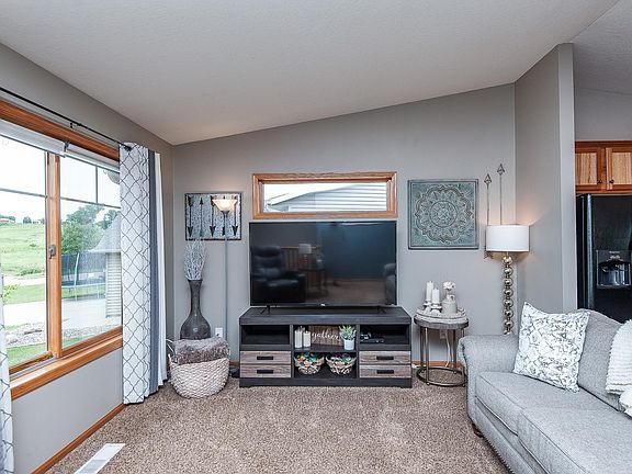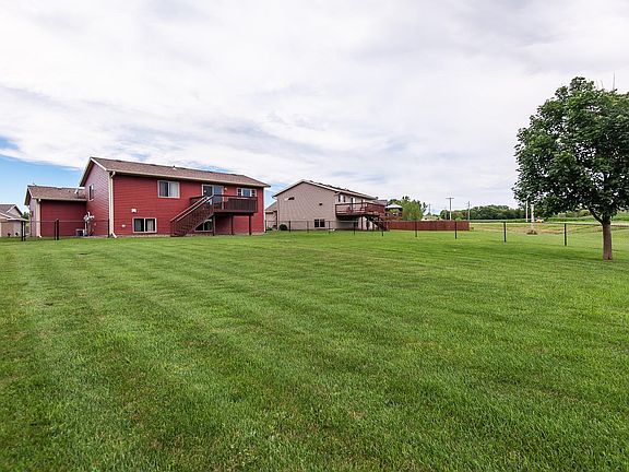 This modern 4-bedroom, 2-bath home located near the golf course in Zumbrota has just what you've been looking for. Open and bright living room with a nice large window and a transom, lovely kitchen with cherry cabinets, large center island, eat-in area to the deck, and a vaulted ceiling, Master bedroom with a walk-through to the main floor bathroom, two nice walk-in closets, main floor bathroom offers a skylight, nice bedroom with a walk in closet, finished lower level features a large family room area, two additional bedrooms, bathroom with plenty of space, and large storage room. Outside you'll enjoy your evenings on your freshly stained deck. Nice landscaping, fenced yard and amazing views.