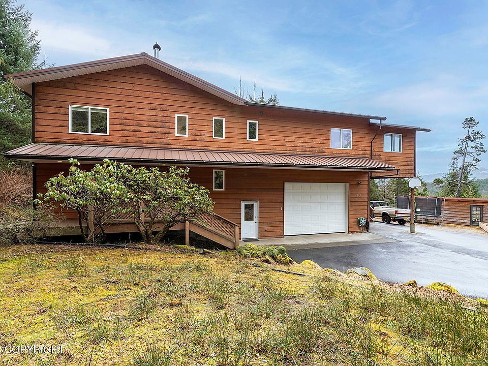 Custom built 5BR/3.5 BA residence with unique architectural details and ample room to entertain. Well appointed interior features an open kitchen/dining area, wood floors, vaulted ceilings, and a wall of windows to let in plenty of light. Large deck off back of the house, perfect for private family time and summer BBQ. Ginormous master suite with full ensuite bathroom and attached large sunroom perfect for an exercise/yoga room or convert it to your very own quilting room. Large two car garage with with additional shop space for the handyman, wired with 220/240V, perfect for your welding projects. Outside there is a 12' X 30' Greenhouse and raised flower beds. Paved driveway with lots of room for boat or R/V storage.