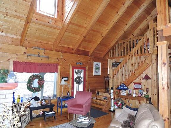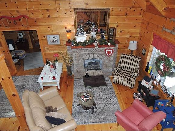 2 bedroom, 2 1/2 bath custom log home situated on 19.01 mostly wooded acres. Immaculate home with beautiful landscaping in a very private country setting. Kitchen is open to the great room with gas log fireplace. Master bedroom with en-suite bath on the main level. Cozy den area or home office. Beautiful loft balcony overlooks the living room. Large bedroom and full bath on second level. There is a bonus room above the garage accessed by its own stairway. One car attached garage.